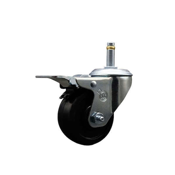 3'' Soft Rubber Wheel Swivel 7/16'' Stem Caster with Total Lock Brake