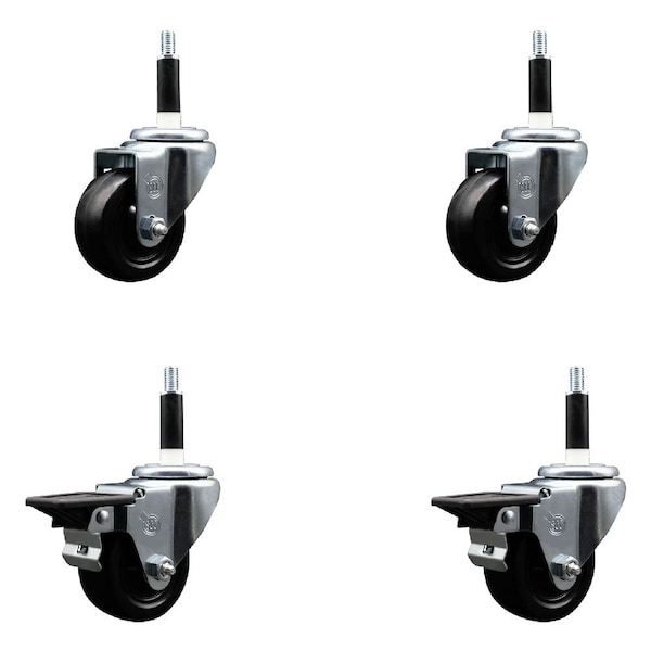 3'' Soft Rubber Wheel Swivel 7/8'' Expanding Stem Caster Set 2 Brakes, 4PK