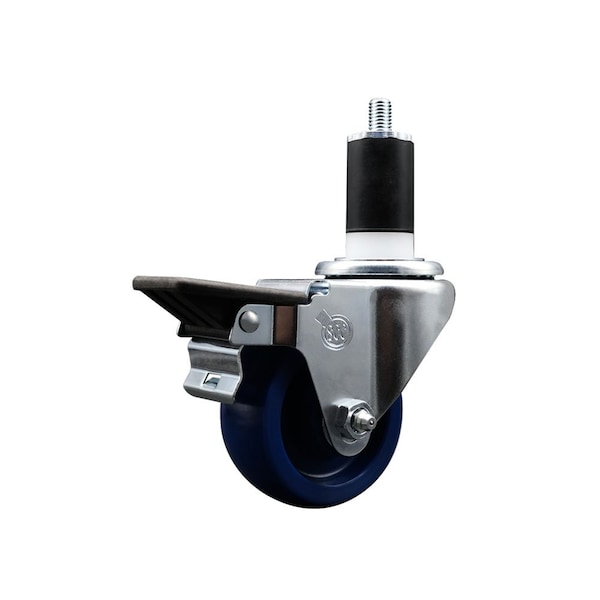 Listing is for one 1 Service Caster Series #20 1-1/2'' expanding stem swivel caster with a 3'' diameter by 1-1/4'' wide blue solid polyurethane wheel and a posi locking brake capable of supporting 300 lbs./caster. When searching for a reliable and durable solution to your caster needs, look no further than the Service Caster Series 20 expanding stem solid polyurethane wheel casters. The Series #20 features an innovative expanding stem that can easily adapt to the inside diameter of the opening, allowing for a secure fit in round or square tubes. Simply tighten the topmost knurled nut to compress the rubber for a snug fit. For added security, further compress the rubber with a wrench via the nut under the swivel raceway. Finely crafted with a bright zinc plated finish, heat-treated ball bearing raceway, and a solid polyurethane wheel, this versatile caster is ideal for work tables, shop projects, or any equipment with round or square tube legs. Service Caster is unsurpassed in quality, reliability, and excellent customer service. Count on us to move you forward.