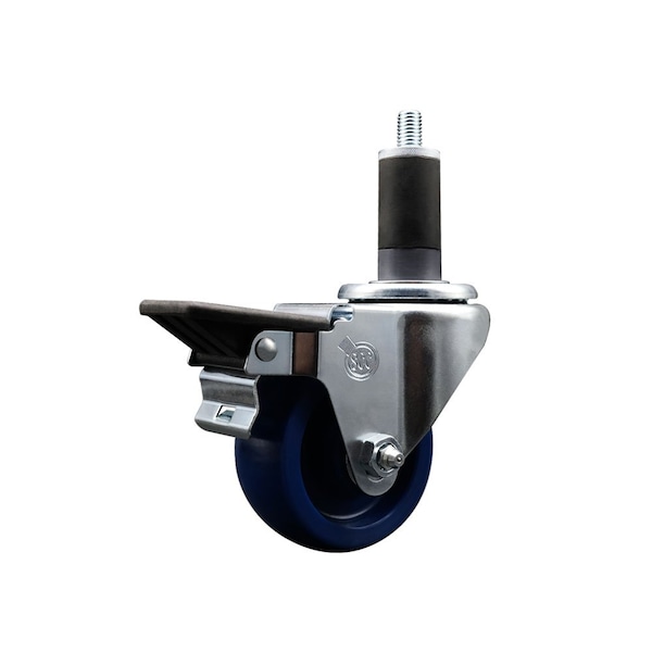 Listing is for one 1 Service Caster Series #20 1-1/4'' expanding stem swivel caster with a 3'' diameter by 1-1/4'' wide blue solid polyurethane wheel and a posi locking brake capable of supporting 300 lbs./caster. When searching for a reliable and durable solution to your caster needs, look no further than the Service Caster Series 20 expanding stem solid polyurethane wheel casters. The Series #20 features an innovative expanding stem that can easily adapt to the inside diameter of the opening, allowing for a secure fit in round or square tubes. Simply tighten the topmost knurled nut to compress the rubber for a snug fit. For added security, further compress the rubber with a wrench via the nut under the swivel raceway. Finely crafted with a bright zinc plated finish, heat-treated ball bearing raceway, and a solid polyurethane wheel, this versatile caster is ideal for work tables, shop projects, or any equipment with round or square tube legs. Service Caster is unsurpassed in quality, reliability, and excellent customer service. Count on us to move you forward.