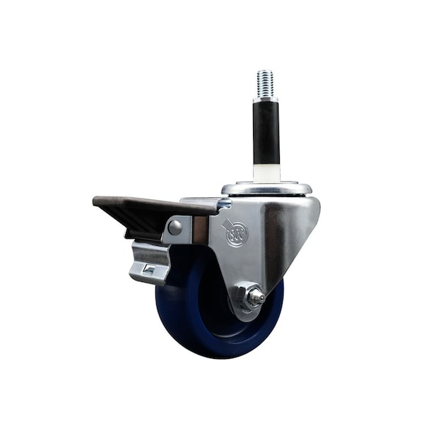 Listing is for one 1 Service Caster Series #20 7/8'' expanding stem swivel caster with a 3'' diameter by 1-1/4'' wide blue solid polyurethane wheel and a posi locking brake capable of supporting 300 lbs./caster. When searching for a reliable and durable solution to your caster needs, look no further than the Service Caster Series 20 expanding stem solid polyurethane wheel casters. The Series #20 features an innovative expanding stem that can easily adapt to the inside diameter of the opening, allowing for a secure fit in round or square tubes. Simply tighten the topmost knurled nut to compress the rubber for a snug fit. For added security, further compress the rubber with a wrench via the nut under the swivel raceway. Finely crafted with a bright zinc plated finish, heat-treated ball bearing raceway, and a solid polyurethane wheel, this versatile caster is ideal for work tables, shop projects, or any equipment with round or square tube legs. Service Caster is unsurpassed in quality, reliability, and excellent customer service. Count on us to move you forward.
