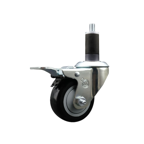 3'' SS Black Poly Swivel 1-1/4'' Expanding Stem Caster Total Lock Brake