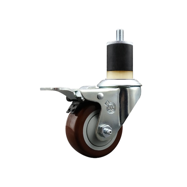 3'' SS Maroon Poly Swivel 1-7/8'' Expanding Stem Caster Total Lock Brake