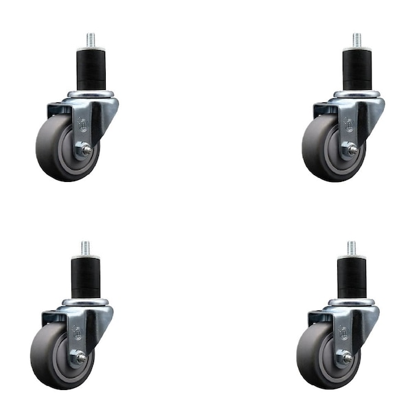 3'' Thermoplastic Rubber Wheel Swivel 1-3/4'' Expanding Stem Caster Set, 4PK