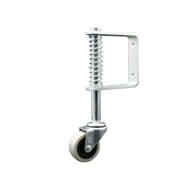 Listing is for one 1 Service Caster swivel gate and ladder caster with a 3'' diameter thermoplastic rubber wheel capable of supporting 110 lbs./caster and a 25 lbs. compression gate spring. Features a 1'' x 3-3/8'' overall plate size with two 5/16'' mounting holes and a 2-1/8'' bolt hole spacing. When searching for a durable caster for your gate or ladder, consider Service Caster's Spring loaded gate and ladder casters featuring a 3'' non marking thermoplastic rubber wheel and ball bearing swivel. Service Caster is unsurpassed in quality, reliability, and excellent customer service. Count on us to move you forward.