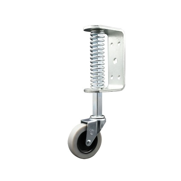 Listing is for one 1 Service Caster swivel gate caster with a 3'' diameter thermoplastic rubber wheel capable of supporting 110 lbs./caster and a 100 lbs. compression gate spring. Features a 2'' x 5-1/8'' overall plate size with four 5/16'' mounting holes and a 1-1/4'' to 3'' bolt hole pattern. When searching for a durable caster for your gate, consider Service Caster's Spring Loaded Gate casters featuring a 3'' thermoplastic rubber wheel and ball bearing swivel. Service Caster is unsurpassed in quality, reliability, and excellent customer service. Count on us to move you forward.