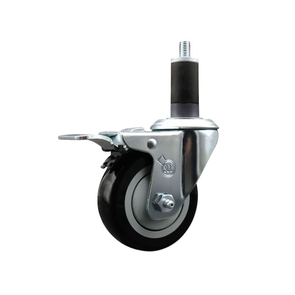 Listing is for one 1 Service Caster Series #20 1-1/4'' expanding stem swivel caster with a 3-1/2'' diameter by 1-1/4'' wide black polyurethane wheel and a total locking brake capable of supporting 300 lbs./caster. When searching for a reliable and durable solution to your caster needs, look no further than the Service Caster Series 20 expanding stem black polyurethane wheel casters. The Series #20 features an innovative expanding stem that can easily adapt to the inside diameter of the opening, allowing for a secure fit in round or square tubes. Simply tighten the topmost knurled nut to compress the rubber for a snug fit. For added security, further compress the rubber with a wrench via the nut under the swivel raceway. Finely crafted with a bright zinc plated finish, heat-treated ball bearing raceway, and a black polyurethane wheel, this versatile caster is ideal for work tables, shop projects, or any equipment with round or square tube legs. Service Caster is unsurpassed in quality, reliability, and excellent customer service. Count on us to move you forward.