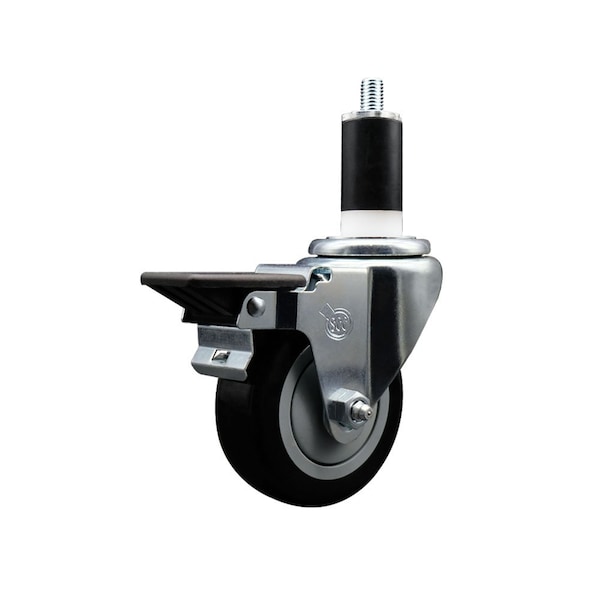 3.5'' Black Poly Swivel 1-3/8'' Expanding Stem Caster with Brake