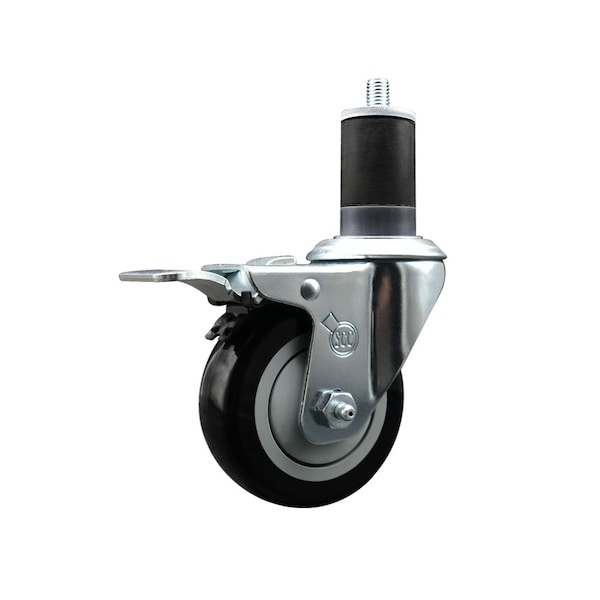 Listing is for one 1 Service Caster Series #20 1-5/8'' expanding stem swivel caster with a 3-1/2'' diameter by 1-1/4'' wide black polyurethane wheel and a total locking brake capable of supporting 300 lbs./caster. When searching for a reliable and durable solution to your caster needs, look no further than the Service Caster Series 20 expanding stem black polyurethane wheel casters. The Series #20 features an innovative expanding stem that can easily adapt to the inside diameter of the opening, allowing for a secure fit in round or square tubes. Simply tighten the topmost knurled nut to compress the rubber for a snug fit. For added security, further compress the rubber with a wrench via the nut under the swivel raceway. Finely crafted with a bright zinc plated finish, heat-treated ball bearing raceway, and a black polyurethane wheel, this versatile caster is ideal for work tables, shop projects, or any equipment with round or square tube legs. Service Caster is unsurpassed in quality, reliability, and excellent customer service. Count on us to move you forward.