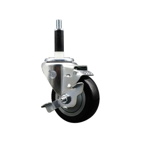 Listing is for one 1 Service Caster Series #20 7/8'' expanding stem swivel caster with a 3-1/2'' diameter by 1-1/4'' wide black polyurethane wheel and a top locking brake capable of supporting 300 lbs./caster. When searching for a reliable and durable solution to your caster needs, look no further than the Service Caster Series 20 expanding stem black polyurethane wheel casters. The Series #20 features an innovative expanding stem that can easily adapt to the inside diameter of the opening, allowing for a secure fit in round or square tubes. Simply tighten the topmost knurled nut to compress the rubber for a snug fit. For added security, further compress the rubber with a wrench via the nut under the swivel raceway. Finely crafted with a bright zinc plated finish, heat-treated ball bearing raceway, and a black polyurethane wheel, this versatile caster is ideal for work tables, shop projects, or any equipment with round or square tube legs. Service Caster is unsurpassed in quality, reliability, and excellent customer service. Count on us to move you forward.