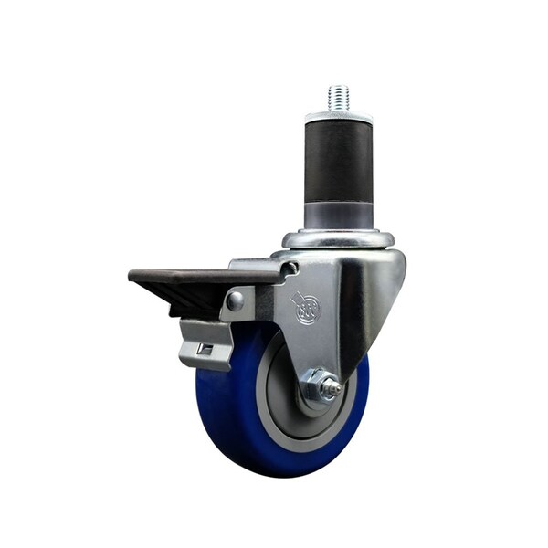 3.5'' Blue Poly Swivel 1-5/8'' Expanding Stem Caster with Brake