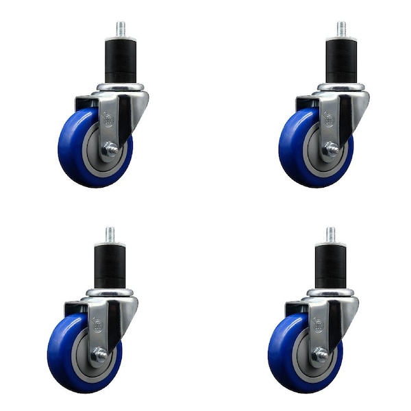 3.5'' Blue Poly Wheel Swivel 1-3/4'' Expanding Stem Caster Set, 4PK