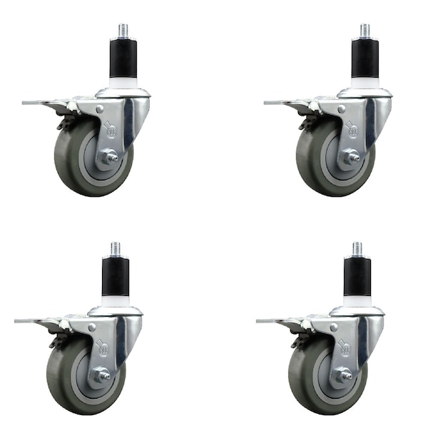 3.5'' Gray Poly Swivel 1-1/2'' Expanding Stem Caster Set Total Lock Brake, 4PK