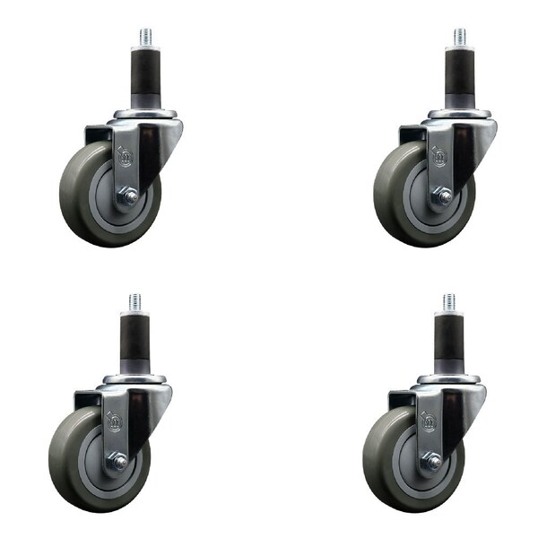3.5'' Gray Poly Wheel Swivel 1-1/4'' Expanding Stem Caster Set, 4PK