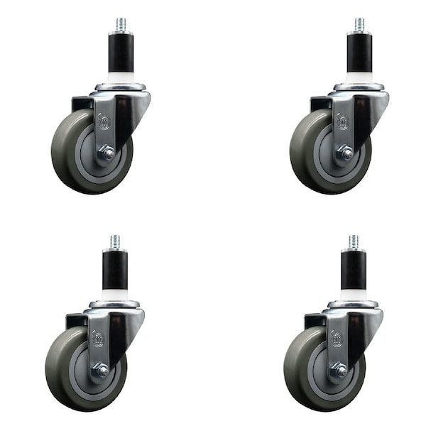 3.5'' Gray Poly Wheel Swivel 1-3/8'' Expanding Stem Caster Set, 4PK