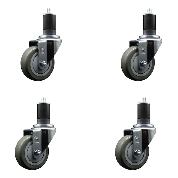3.5'' Gray Poly Wheel Swivel 1-5/8'' Expanding Stem Caster Set, 4PK
