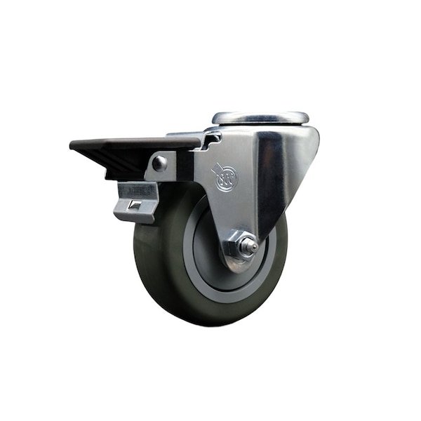 Listing is for one 1 Service Caster Series #20 swivel caster with a 3-1/2'' diameter by 1-1/4'' wide gray polyurethane wheel and a bolt hole with posi lock brake capable of supporting 300 lbs./caster. When searching for a reliable and durable solution to your caster needs, consider Service Caster's Series 20 bolt hole polyurethane casters. The Service Caster Series #20 is ideal for light and medium duty material handling, carts, equipment, and shop projects. The bolt hole can accept a bolt or a customized stem, allowing for any type of mounting requirement.The zinc plated finish provides durability under any condition, while the non-marking, non-marring polyurethane wheels perform especially well on hard surfaces such as concrete, tile, and wood. All rolling on a finely crafted ball bearing design that will keep you moving forward. Service Caster is unsurpassed in quality, reliability, and excellent customer service. Count on us to move you forward.