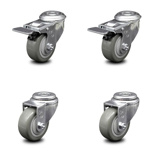 3.5 Inch Gray Polyurethane Swivel Bolt Hole Caster Set with 2 Total Lock Brake