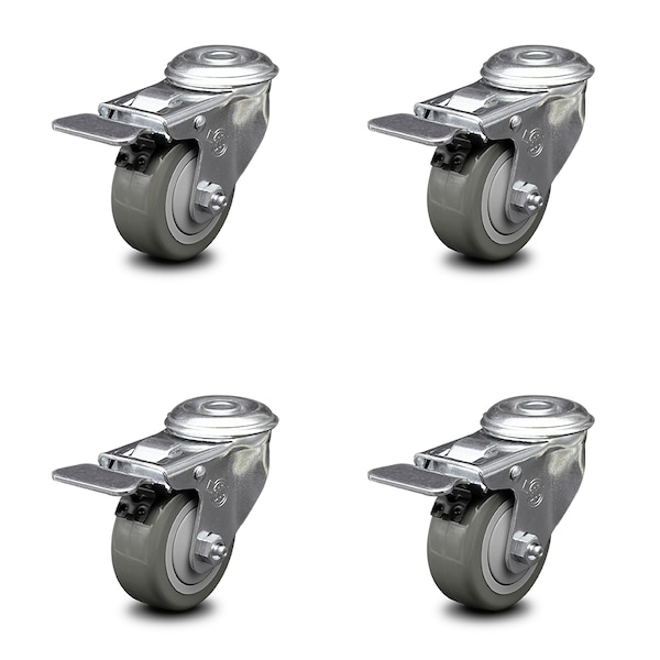 3.5 Inch Gray Polyurethane Swivel Bolt Hole Caster Set with Total Lock Brake