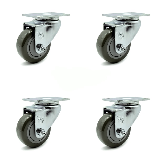 3.5 Inch Gray Polyurethane Wheel Swivel Top Plate Caster Set