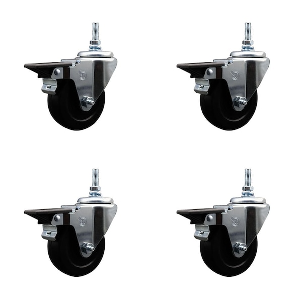 Listing is for a set of four 4 Service Caster Series 20 swivel casters, four 4 swivel 12MM threaded stem casters with posi lock brakes, 312 diameter by 114 wide hard rubber wheels Supports a total weight of 1,140 lbs 285 lbsper caster When searching for a reliable and durable solution to your caster needs, consider Service Casters Series 20 hard rubber casters The Service Caster Series 20 is ideal for light and medium duty material handling, carts, equipment, and shop projects The hard rubber wheels not only provide higher load capacities and impact resistance than comparable wheels, but are also resistant to most chemicals and oils Mounting options include top plate, bolt hole and standard and metric threaded stem sizes All rolling on a finely crafted ball bearing design and zinc plated finish that provides durability under any condition and keeps you safely moving forward