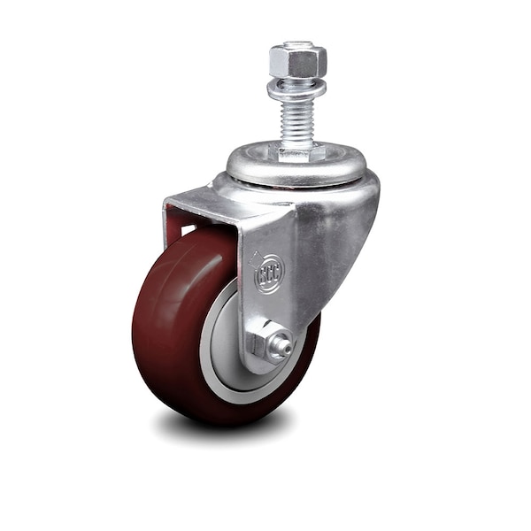 3.5 Inch Maroon Polyurethane Wheel Swivel 12mm Threaded Stem Caster SCC