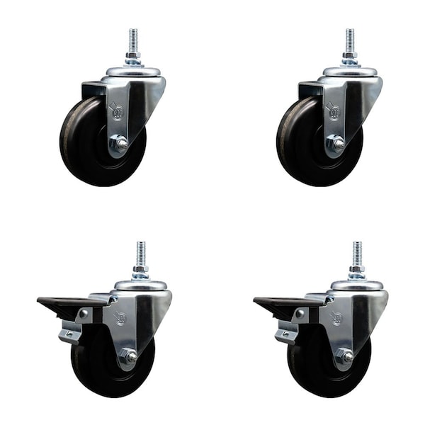 35 Inch Phenolic 12 MM Threaded Stem Caster Set 2 Brakes SCC