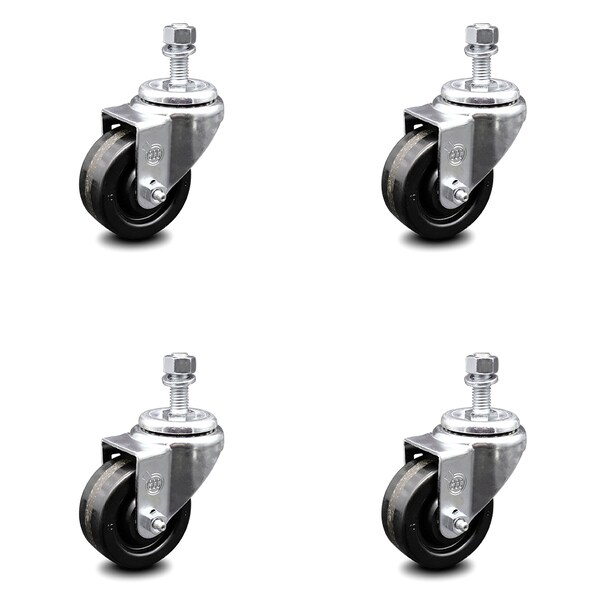 3.5 Inch Phenolic Wheel Swivel 12mm Threaded Stem Caster Set