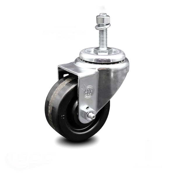 3.5 Inch Phenolic Wheel Swivel 3/8 Inch Threaded Stem Caster