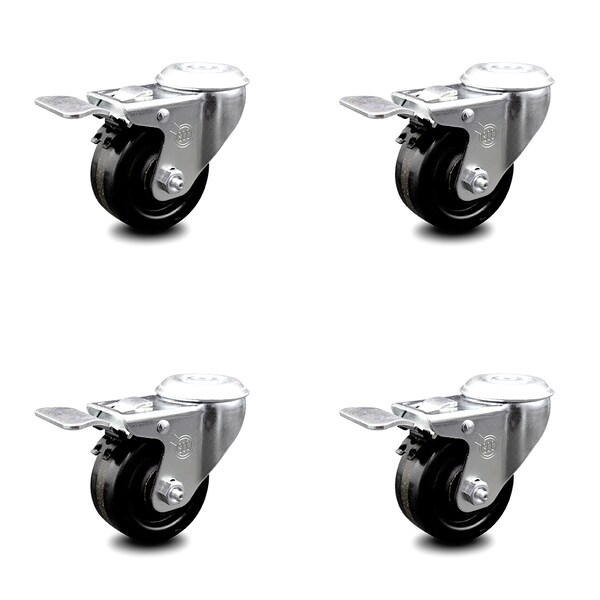 3.5 Inch Phenolic Wheel Swivel Bolt Hole Caster Set with Total Lock Brake SCC