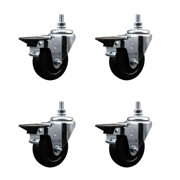 Listing is for a set of four 4 Service Caster Series 20 swivel casters, four 4 swivel 12 threaded stem casters with posi lock brakes, 312 diameter by 114 wide soft rubber wheels Supports a total weight of 800lbs 200lbsper caster When searching for a reliable and durable solution to your caster needs, consider Service Casters Series 20 soft rubber casters The Service Caster Series 20 is ideal for light and medium duty material handling, carts, equipment, and shop projects The zinc plated finish provides durability under any condition The soft rubber wheels resistant to most chemicals and oils combine a soft tread on a hard rubber core, offering quiet movement and a cushioned ride Mounting options include top plate, bolt hole and standard and metric threaded stem sizes