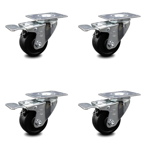 Listing is for a set of four (4) Service Caster Series #20 casters, four (4) swivel top plate casters with total lock brakes, 3.5” diameter by 1-1/4” wide phenolic wheels. Supports a total weight of 800lbs (200lbs/per caster). When searching for a reliable and durable solution to your caster needs, consider Service Caster’s Series 20 soft rubber casters. The Service Caster Series #20 is ideal for light and medium duty material handling, carts, equipment, and shop projects. The zinc plated finish provides durability under any condition. The soft rubber wheels- resistant to most chemicals and oils- combine a soft tread on a hard rubber core, offering quiet movement and a cushioned ride. Mounting options include top plate, bolt hole and standard and metric threaded stem sizes. Service Caster is unsurpassed in quality, reliability, and excellent customer service. Count on us to move you forward.