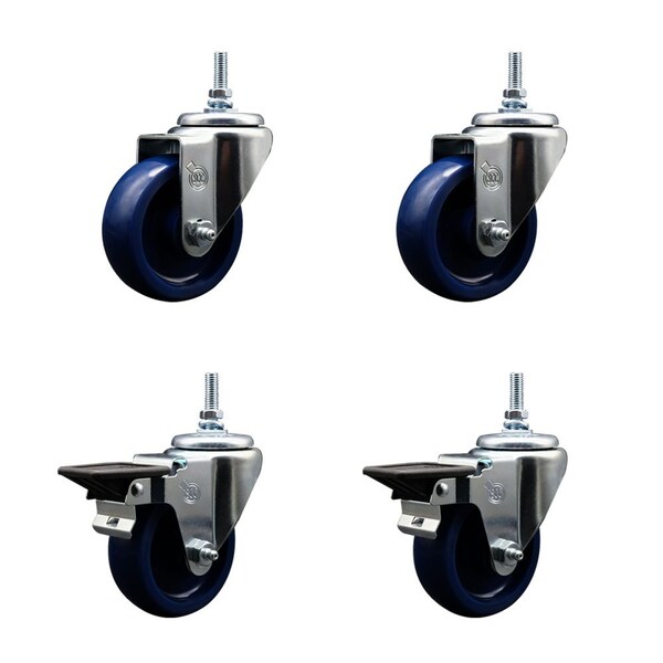 Listing is for a set of four 4 Service Caster Series 20 casters, two 2 swivel 38 threaded stem with brake casters and two 2 swivel casters, with 312 diameter by 114 wide solid polyurethane wheels Supports a total weight of 1,200lbs 300lbsper caster The Service Caster Series 20 is ideal for light and medium duty material handling, carts, equipment, and shop projects The zinc plated finish provides durability under any condition And the nonmarking, nonmarring polyurethane wheel is molded as one solid piece, making it free from debonding This ensures the wheel will not flat spot, as can occur with comparable polyurethane wheels, resulting in a smooth and solid roll over long periods of time Mounting options include top plate, bolt hole and standard and metric threaded stem sizes