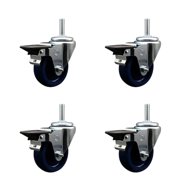 Listing is for a set of four 4 Service Caster Series 20 swivel casters, four 4 swivel 58 threaded stem casters with posi lock brakes, 312 diameter by 114 wide solid polyurethane wheels Supports a total weight of 1,200lbs 300lbsper caster The Service Caster Series 20 is ideal for light and medium duty material handling, carts, equipment, and shop projects The zinc plated finish provides durability under any condition And the nonmarking, nonmarring polyurethane wheel is molded as one solid piece, making it free from debonding This ensures the wheel will not flat spot, as can occur with comparable polyurethane wheels, resulting in a smooth and solid roll over long periods of time Mounting options include top plate, bolt hole and standard and metric threaded stem sizes