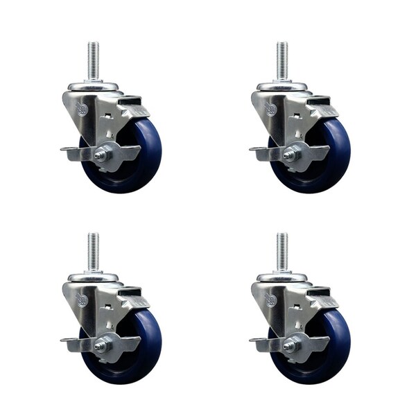 Listing is for a set of four 4 Service Caster Series 20 swivel casters, four 4 swivel 58 threaded stem casters with top lock brakes, 312 diameter by 114 wide solid polyurethane wheels Supports a total weight of 1,200lbs 300lbsper caster The Service Caster Series 20 is ideal for light and medium duty material handling, carts, equipment, and shop projects The zinc plated finish provides durability under any condition And the nonmarking, nonmarring polyurethane wheel is molded as one solid piece, making it free from debonding This ensures the wheel will not flat spot, as can occur with comparable polyurethane wheels, resulting in a smooth and solid roll over long periods of time Mounting options include top plate, bolt hole and standard and metric threaded stem sizes