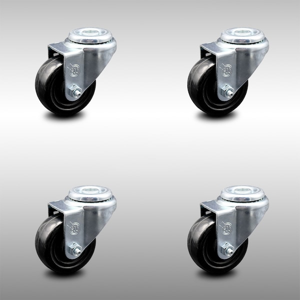 3.5 Inch SS Hard Rubber Wheel Swivel Bolt Hole Caster Set