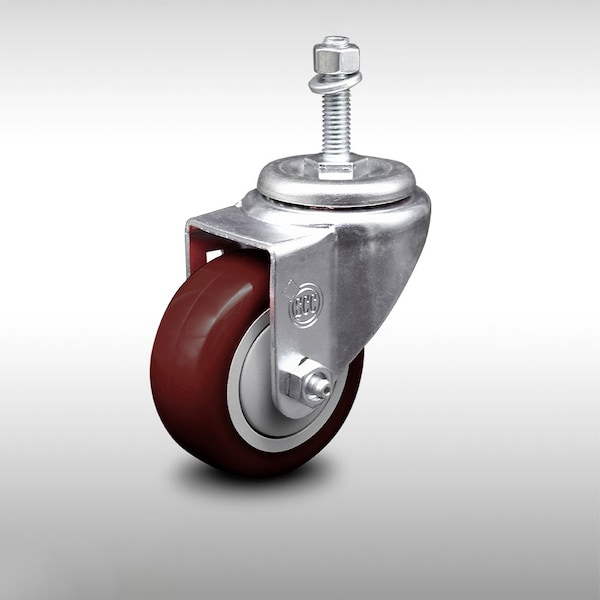 3.5 Inch SS Maroon Polyurethane Wheel Swivel 10mm Threaded Stem Caster SCC