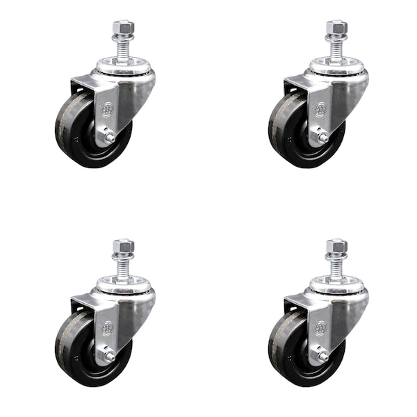 3.5 Inch SS Phenolic Wheel Swivel 10mm Threaded Stem Caster Set SCC