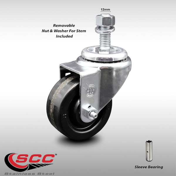3.5 Inch SS Phenolic Wheel Swivel 12mm Threaded Stem Caster