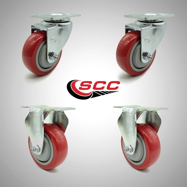 3.5 Inch SS Red Polyurethane Swivel Top Plate Caster Set with 2 Rigid SCC