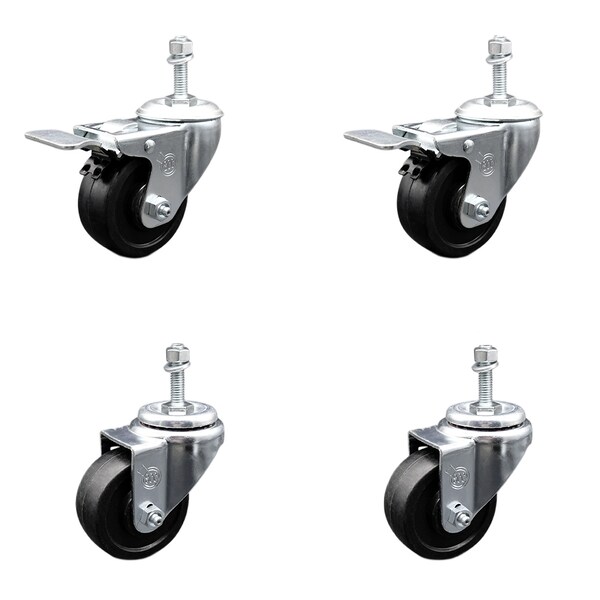 Listing is for a set of four (4) Service Caster Series #20 stainless steel casters, two (2) swivel 10mm-1.50 X 1-1/2" metric threaded stem with total lock brake casters and two (2) swivel casters, with 3-1/2” diameter by 1-1/4” wide soft rubber wheels. Supports a total weight of 800lbs (200lbs/per caster).When searching for a reliable and durable solution to your caster needs, consider Service Caster’s Series 20 stainless steel soft rubber casters. The Service Caster Series #20 is ideal for light and medium duty material handling, carts, equipment, and shop projects. The soft rubber wheels- resistant to most chemicals and oils- combine a soft tread on a hard rubber core, offering quiet movement and a cushioned ride. In contrast to the zinc plated caster, the luxuriously polished stainless steel finish resists rust and corrosion in indoor or outdoor applications where moisture is a factor. Mounting options include top plate, bolt hole and standard and metric threaded stem sizes. Service Caster is unsurpassed in quality, reliability, and excellent customer service. Count on us to move you forward.