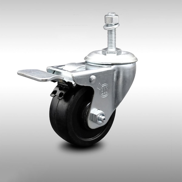 3.5 Inch SS Soft Rubber 10mm Threaded Stem Caster with Total Lock Brake SCC