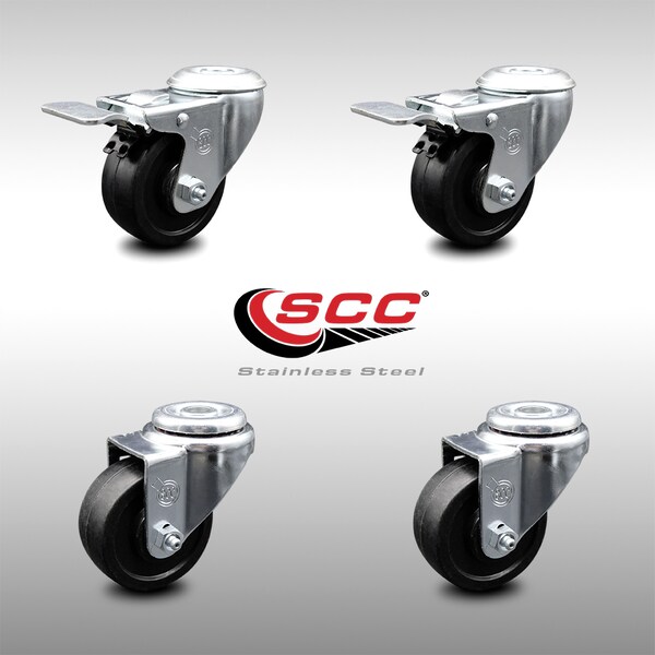 3.5 Inch SS Soft Rubber Swivel Bolt Hole Caster Set with 2 Total Lock Brake SCC