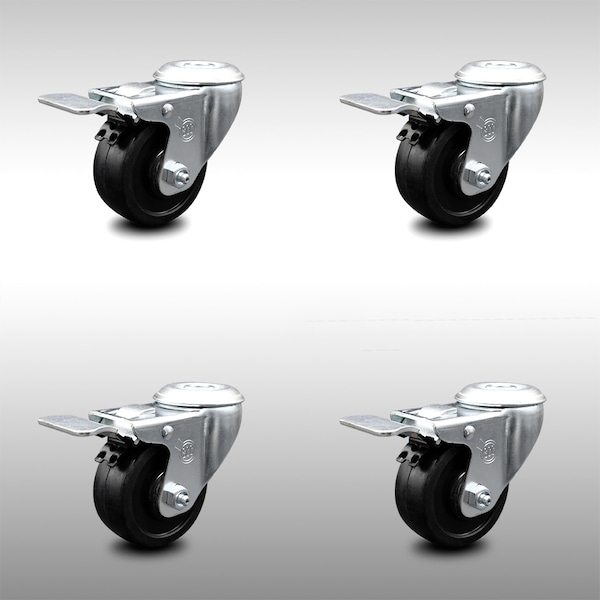 3.5 Inch SS Soft Rubber Swivel Bolt Hole Caster Set with Total Lock Brake SCC
