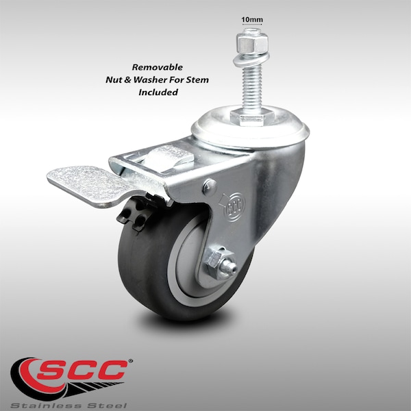 3.5 Inch SS Thermoplastic Rubber 10mm Threaded Stem Caster Total Lock Brake