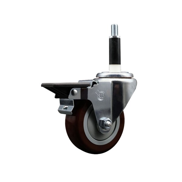 3.5'' Maroon Poly Swivel 7/8'' Expanding Stem Caster with Brake