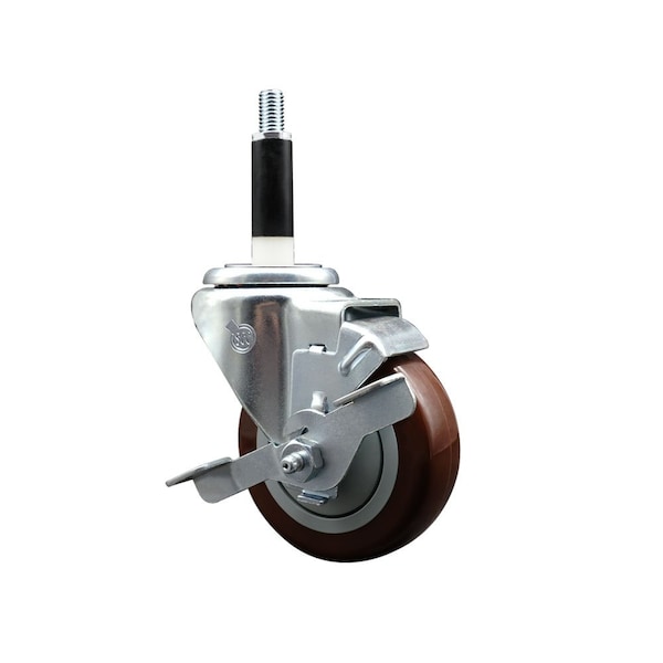 3.5'' Maroon Poly Swivel 7/8'' Expanding Stem Caster with Brake