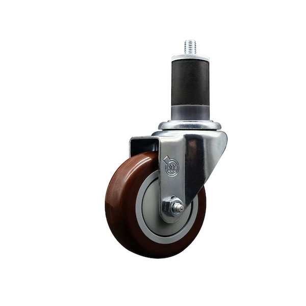 Listing is for one 1 Service Caster Series #20 1-5/8'' expanding stem swivel caster with a 3-1/2'' diameter by 1-1/4'' wide maroon polyurethane wheel capable of supporting 300 lbs./caster. When searching for a reliable and durable solution to your caster needs, look no further than the Service Caster Series 20 expanding stem maroon polyurethane wheel casters. The Series #20 features an innovative expanding stem that can easily adapt to the inside diameter of the opening, allowing for a secure fit in round or square tubes. Simply tighten the topmost knurled nut to compress the rubber for a snug fit. For added security, further compress the rubber with a wrench via the nut under the swivel raceway. Finely crafted with a bright zinc plated finish, heat-treated ball bearing raceway, and a maroon polyurethane wheel, this versatile caster is ideal for work tables, shop projects, or any equipment with round or square tube legs. Service Caster is unsurpassed in quality, reliability, and excellent customer service. Count on us to move you forward.