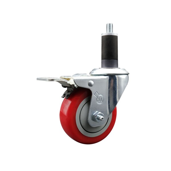 3.5'' Red Poly Swivel 1-1/4'' Expanding Stem Caster Total Lock Brake