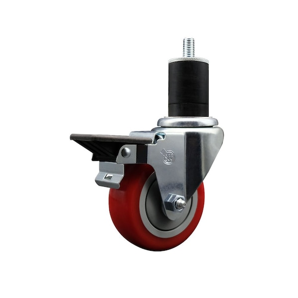 3.5'' Red Poly Swivel 1-3/4'' Expanding Stem Caster with Brake